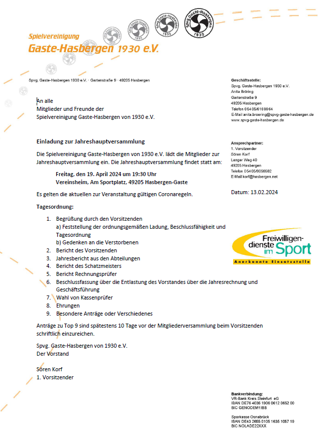 Jahreshauptversammlung Spielvereinigung Gaste-Hasbergen