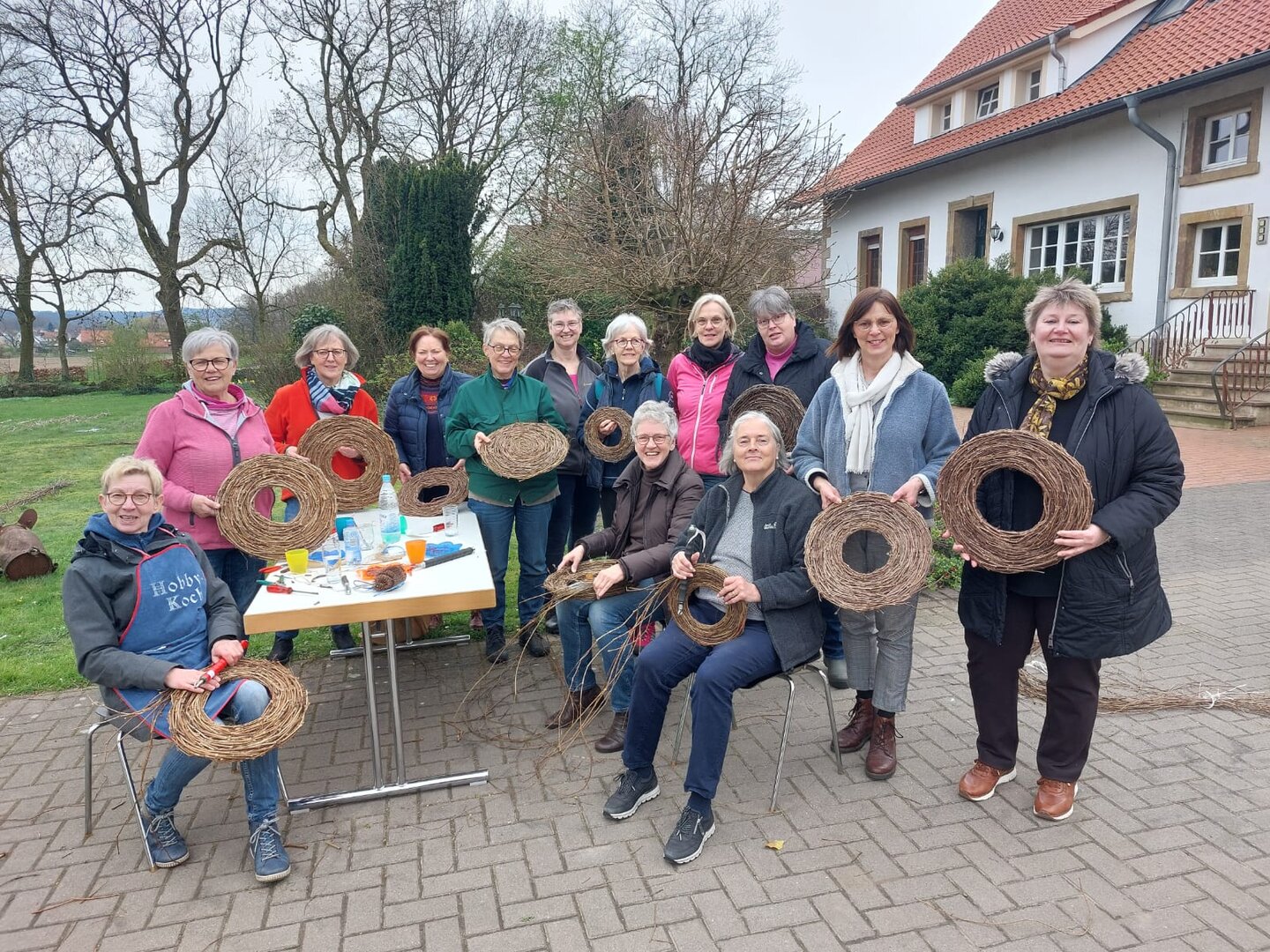 Diesmal waren die Landfrauen zu Gast auf dem Hof Große Börding . Dort fand ein Workshop mit Weinranken statt. Die Weinranken kamen durch einen Aufruf im Herbst zusammen.