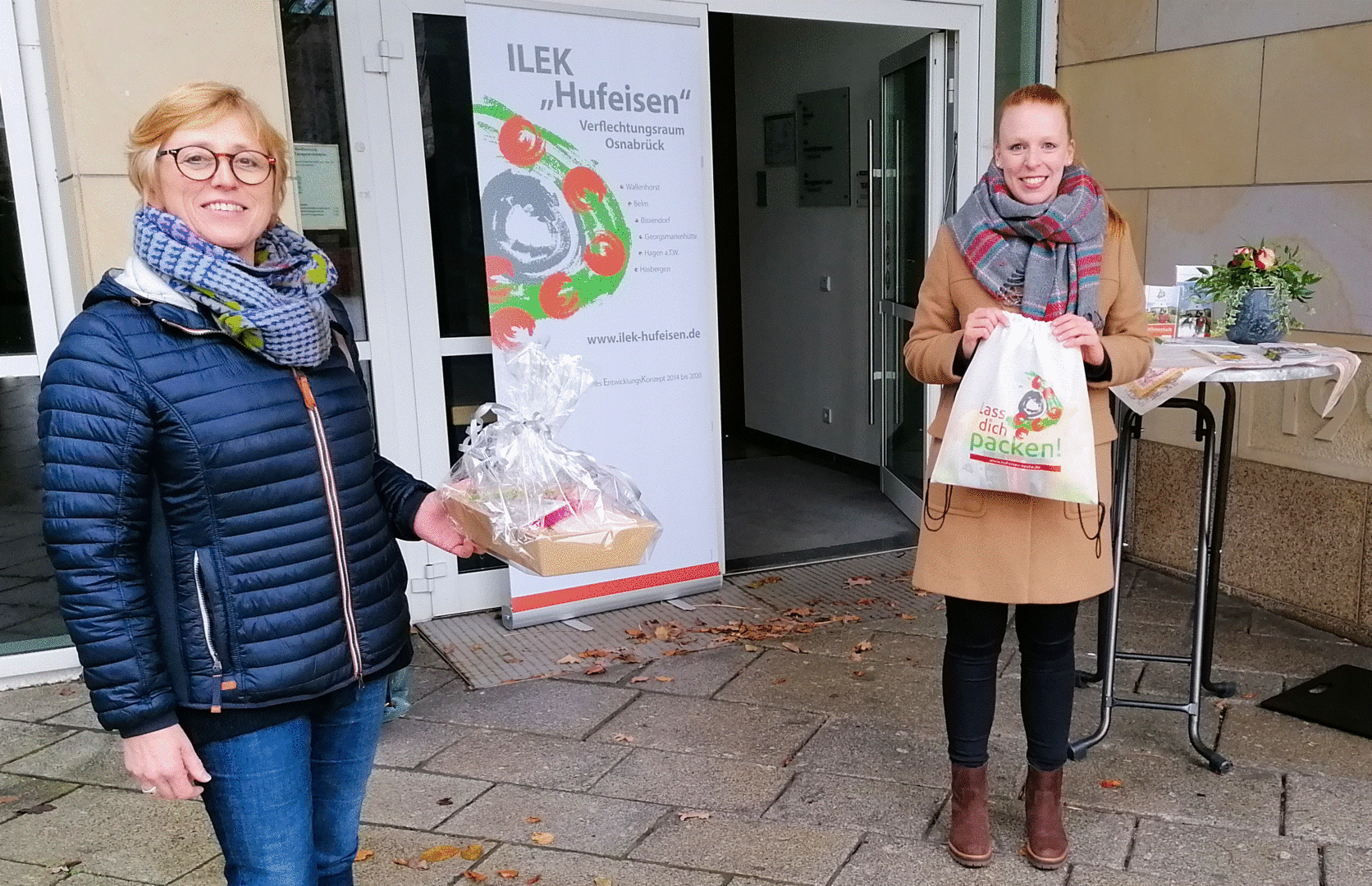 Für die Übergabe der Preise im Wert von je 100 Euro war eine gemeinsame Feierstunde mit allen Gewinnern und Vertretern der Kommunen geplant. Aufgrund der aktuellen Kontaktbeschränkungen war diese Veranstaltung nicht in der Form möglich, sodass die Preise stattdessen verschickt wurden. Einer Gewinnerin konnte Regionalmanagerin Mona Berstermann den Preis persönlich übergeben. Maria-Anna Bellmann aus Wallenhorst freut sich über ihren Gewinn, der aus Gutscheinen des Vehrter Dorfladens und des Meyerhofs Belm besteht: „Den Dorfladen kenne ich bisher nur aus der Zeitung und freue mich, nun dort einkaufen gehen zu können.“ Die Route ist sie noch nicht komplett gefahren, will es aber in diesem Jahr gemeinsam mit ihren Freunden nachholen. Gestiftet wurden die Gewinne von der ILE-Region „Hufeisen“.