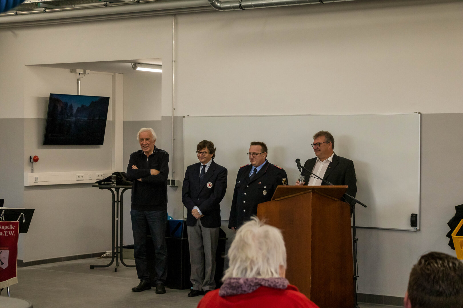Mit diesem Satz übergab Steve Krauß das Wort an den DRK-Vorsitzenden Christian Böckenförde, welcher den Zusammenhalt zwischen Feuerwehr und DRK unterstrich. In Hasbergen werde der Katastrophenschutz großgeschrieben. Das DRK sei ein Teil davon und stolz darauf, mit in das neue Gerätehaus einziehen zu können.