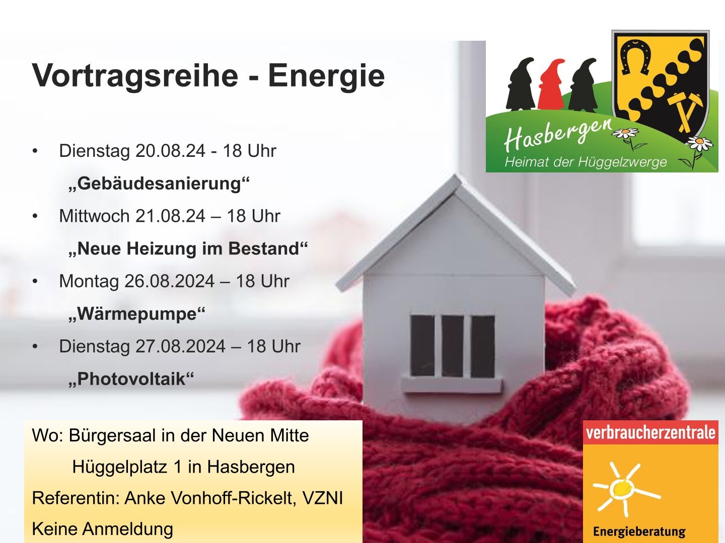 Frau Anke Vonhoff-Rickelt, Energieberaterin der Verbraucherzentrale, hält eine Vortragsreihe zum Thema Energie. Alle dazu notwendigen Informationen finden Sie hier: