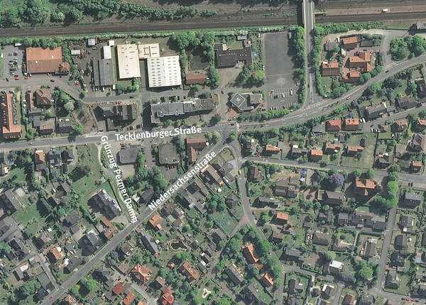 Sanierungsgebiet Zenrum Hasbergen mit Luftbild
