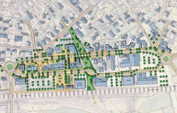 Planung zur Schaffung eines Begegnungszentrums mit hoher Aufenthaltsqualität umgeben von Einkaufsmöglichkeiten, Gastronomie und Dienstleistungen