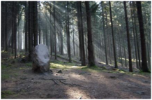 Gedenkstein an den Geologen und Lehrer Dr. Nikolaus H. Bödige aus Osnabrück, der gesagt hat:“ Dieses ist mein liebster Platz mit Blick auf Osnabrück, und hier könnte ich wohl mein Leben beschließen“. Anlässlich einer Wanderung ist er dann tatsächlich an dieser Stelle am 16. Oktober 1926 im Alter von 67 Jahren verstorben.